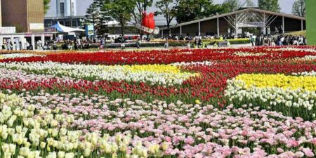 At Tonami Tulip Fair in Japan’s Toyama, Colorful Tulips in Full Bloom; 210,000 Flowers Used to Depict City’s Mascots Tuli-Kun, Lip-Chan