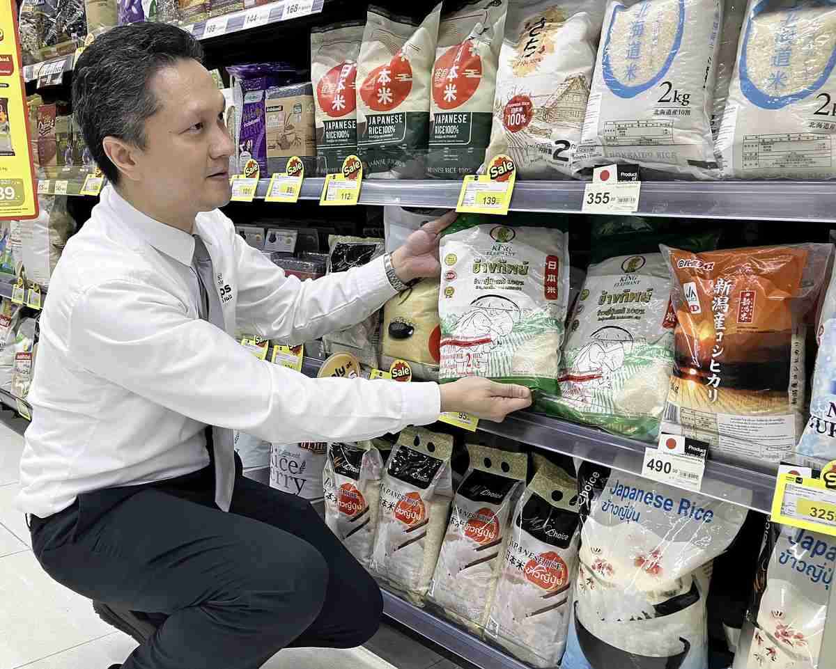 In a supermarket in Bangkok that is part of the Tops group, a major retail chain in Thailand, five-kilogram packs of japonica rice produced in the country were sold for 275 baht (about ¥1,200).