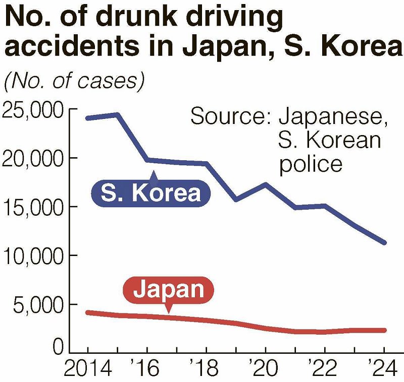 According to the Korean National Police Agency, 11,307 traffic accidents were caused by drunk driving in 2024, about five times that of Japan.