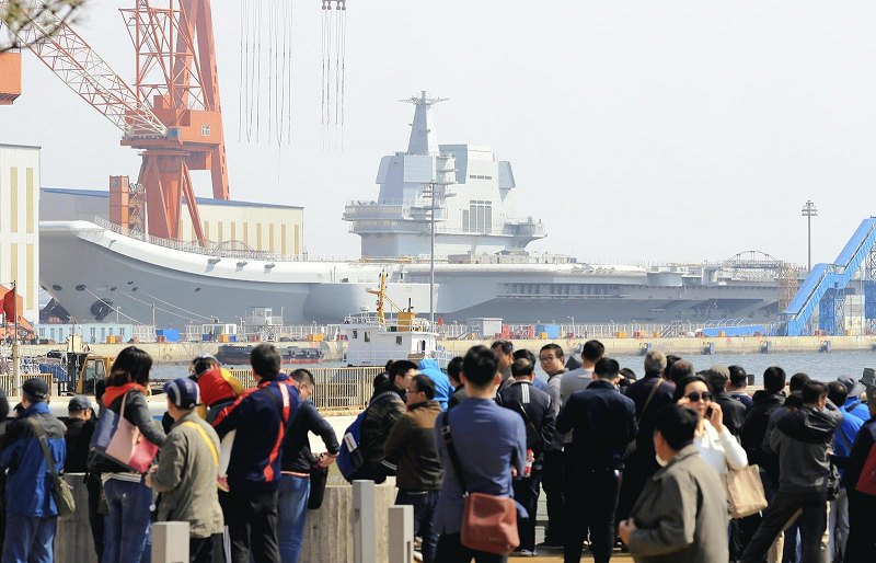 A Chinese aircraft carrier under construction in Dalian, Liaoning Province, in 2017
