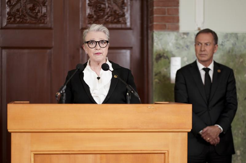 Berit Reiss-Andersen, head of the Nobel Committee, announces the winner of this year’s Peace Prize at the Nobel Institute in Oslo on Friday.
