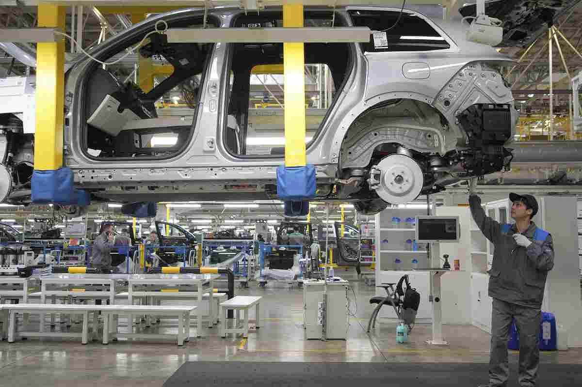 A worker assembles an SUV at a car plant of Li Auto, a major Chinese EV maker, in Changzhou in eastern China’s Jiangsu province on March 27.