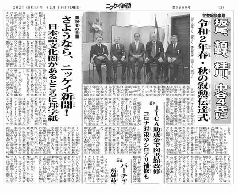The final issue on Dec. 18 featured a column on page two by editor-in-chief Masayuki Fukasawa, 56, titled “Goodbye, Nikkey Shimbun!” Expressing his gratitude to readers, Fukasawa said he had continued to publish Brazil’s last Japanese-language newspaper with a “sense of concern about ‘not being the one to let the flame go out.’”