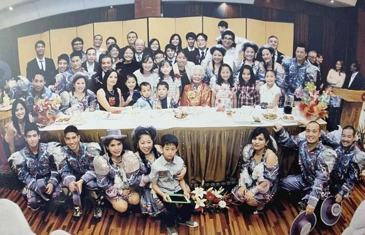 Kamado Arakaki, center, is surrounded by her many grandchildren, great-grandchildren and great-great-grandchildren on her 97th birthday in Lima.