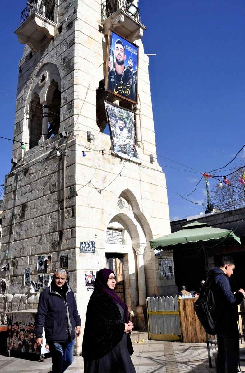 Posters hailing Palestinian fighters killed by the Israeli military are displayed in the old city of Nablus in the West Bank on Tuesday.