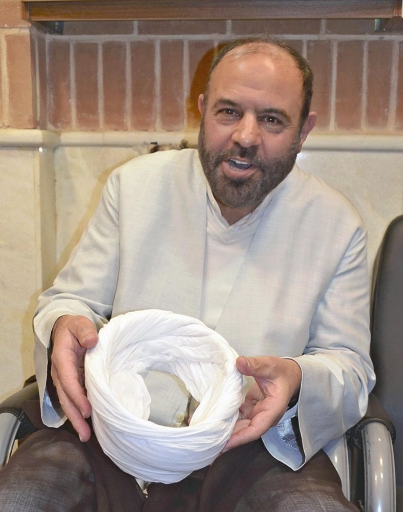 Mohammad-Hossein Mobaraki talks on Jan. 23 about having his turban knocked off.