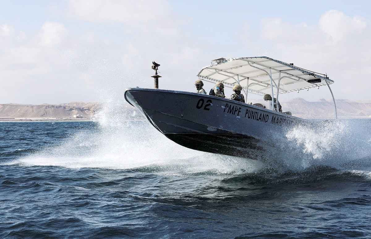 Members of the Puntland Maritime Police Force (PMPF) patrol the Gulf of Aden waters off the coast of Bosaso in the semi-autonomous region of Puntland, Somalia January 30.