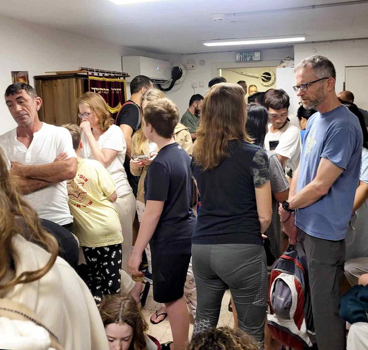 Upon opening the steel door to the shelter, I found a space about the size of a school classroom filled with dozens of hotel guests who had fled barefooted or in their pajamas. Most were Israelis on vacation. Everyone seemed horrified as they made phone calls or searched for information on their smartphones.