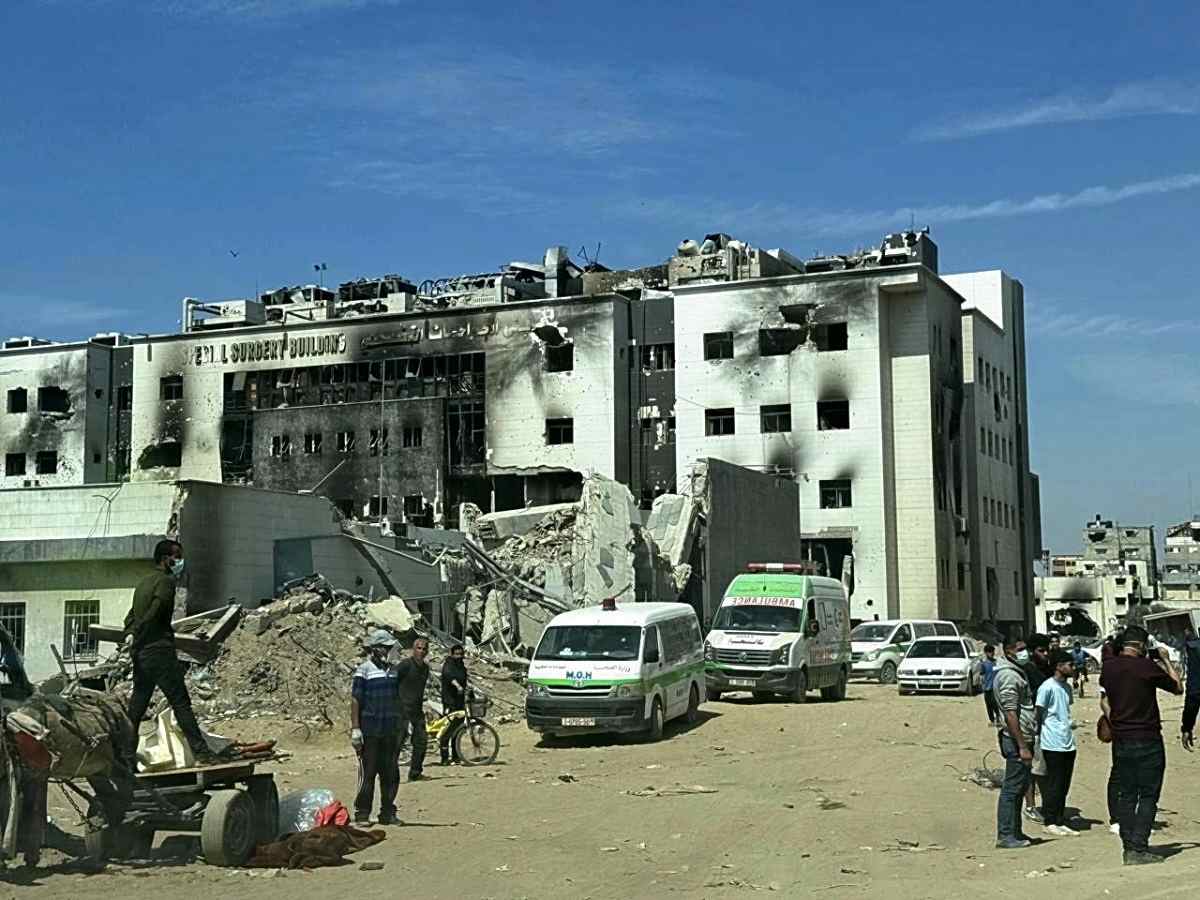Al-Shifa Hospital in Gaza City on April 8. The hospital has been destroyed by Israeli forces and is no longer functioning.