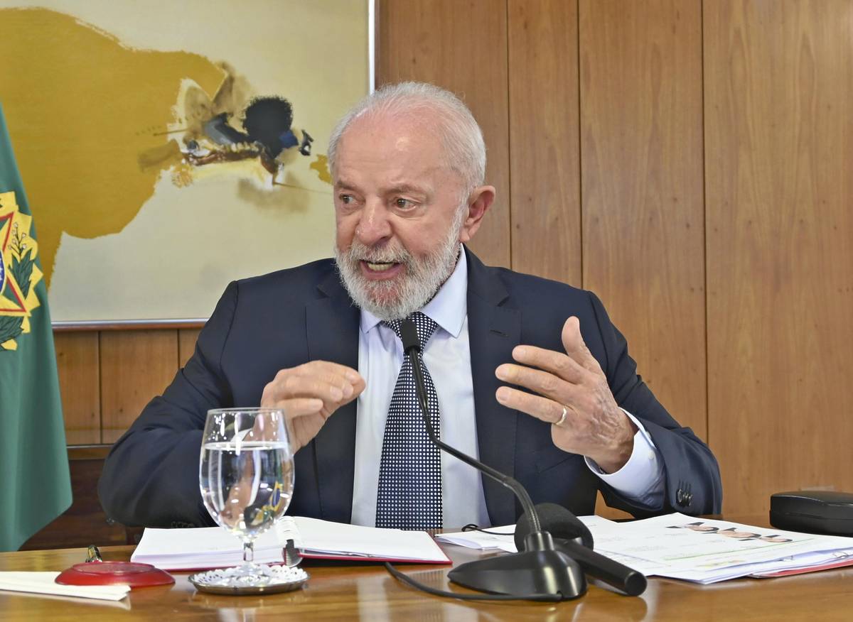 Brazilian President Luiz Inacio Lula da Silva speaks to Japanese media outlets on Tuesday in the presidential office in Brasilia.