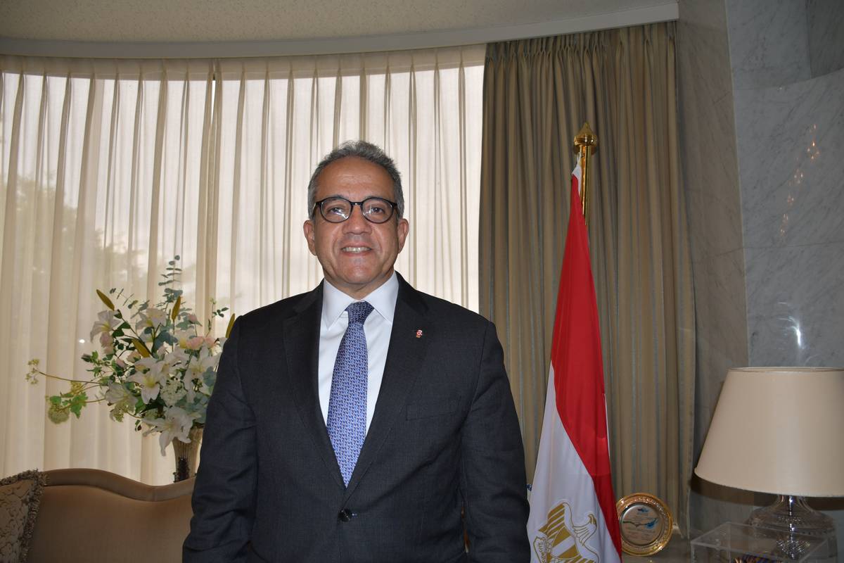 Khaled El-Enany speaks during an interview with The Japan News at the Egyptian Embassy in Tokyo on May 26.
