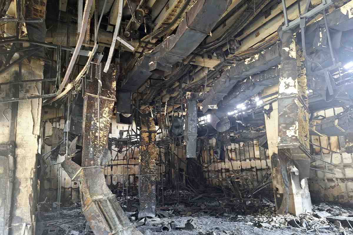 Inside, the five-story building was littered with charred computers, and bare wiring hung from the ceiling and walls, demonstrating the severity of the attack.