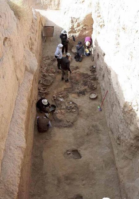 Remains of an 8th-century pantry were discovered in Samarkand, Uzbekistan, Tezukayama University in ...